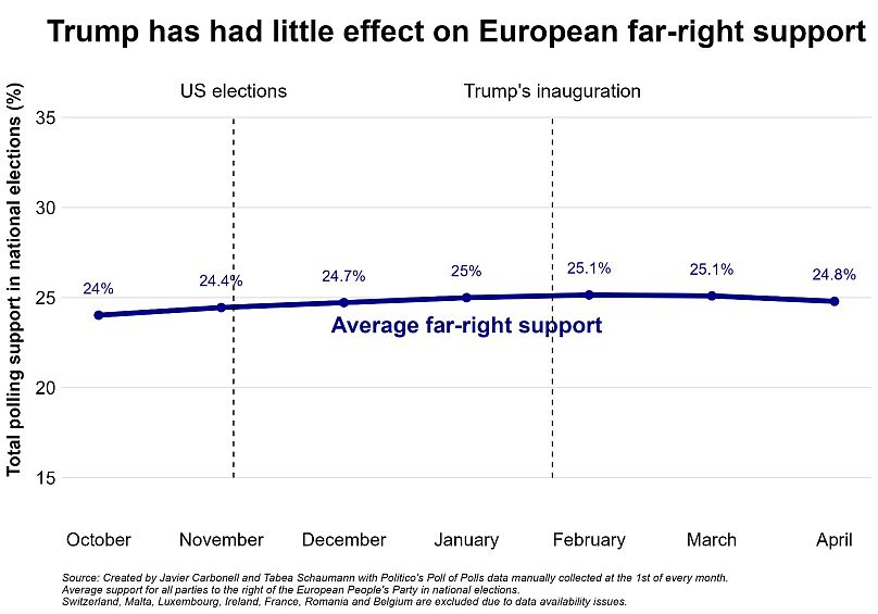 However, according to recent research The analysis conducted by the Brussels-based think tank European Policy Centre — which examined polling data and political developments throughout Europe preceding and following Trump’s election — indicates that Trump is not influencing European voting behaviors whatsoever.